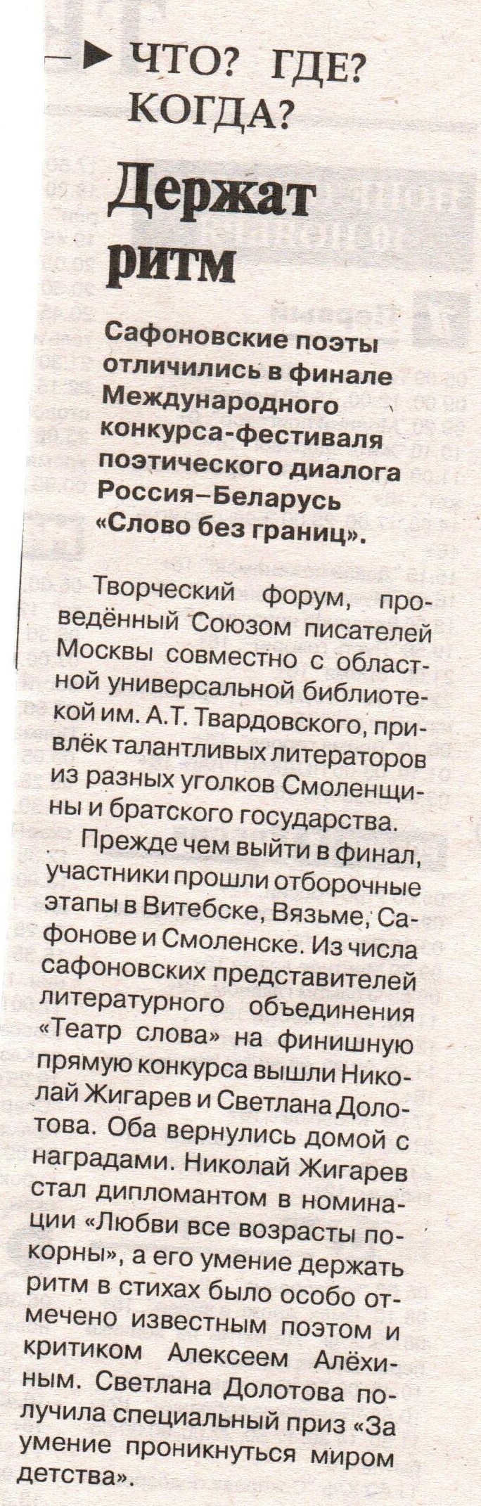 Кузнецова, А. Стихослет // Сафоновская правда. - 2025. - 6 ноября. - С. 5.