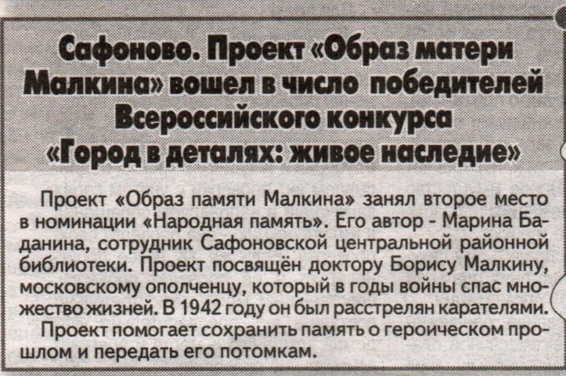 Гляшова, Т. С любовью к Сафонову // Сафоновская правда. - 2025. - 24 апреля. - С. 6.