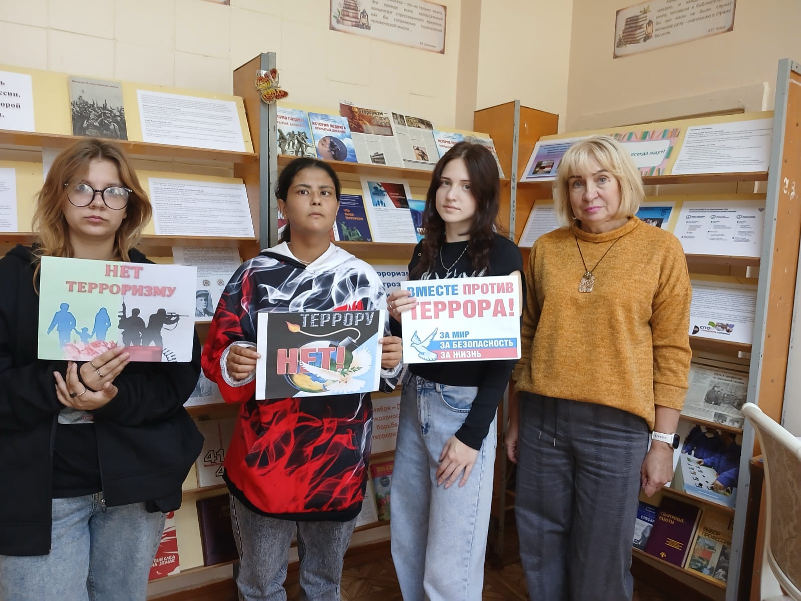Ежегодно 3 сентября в День солидарности в борьбе с терроризмом жители России чтут память жертв террористических атак, а также тех, кто погиб, выполняя свой долг в ходе спасательных операций. В этот памятный день  библиотека-филиал №1 провела час информации «Осторожно терроризм» посвященный Дню солидарности в борьбе с терроризмом для студентов Сафоновского индустриально-технологического техникума.