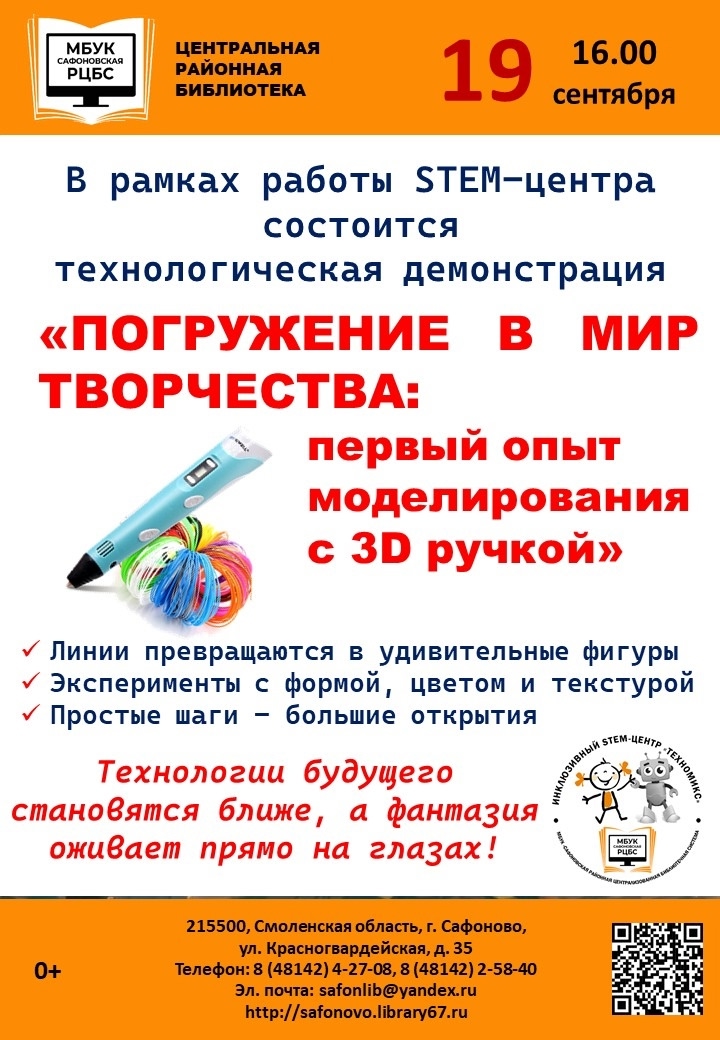 "Технологическая демонстрация «Погружение в мир творчества: первый опыт моделирования с 3D-ручкой!»"