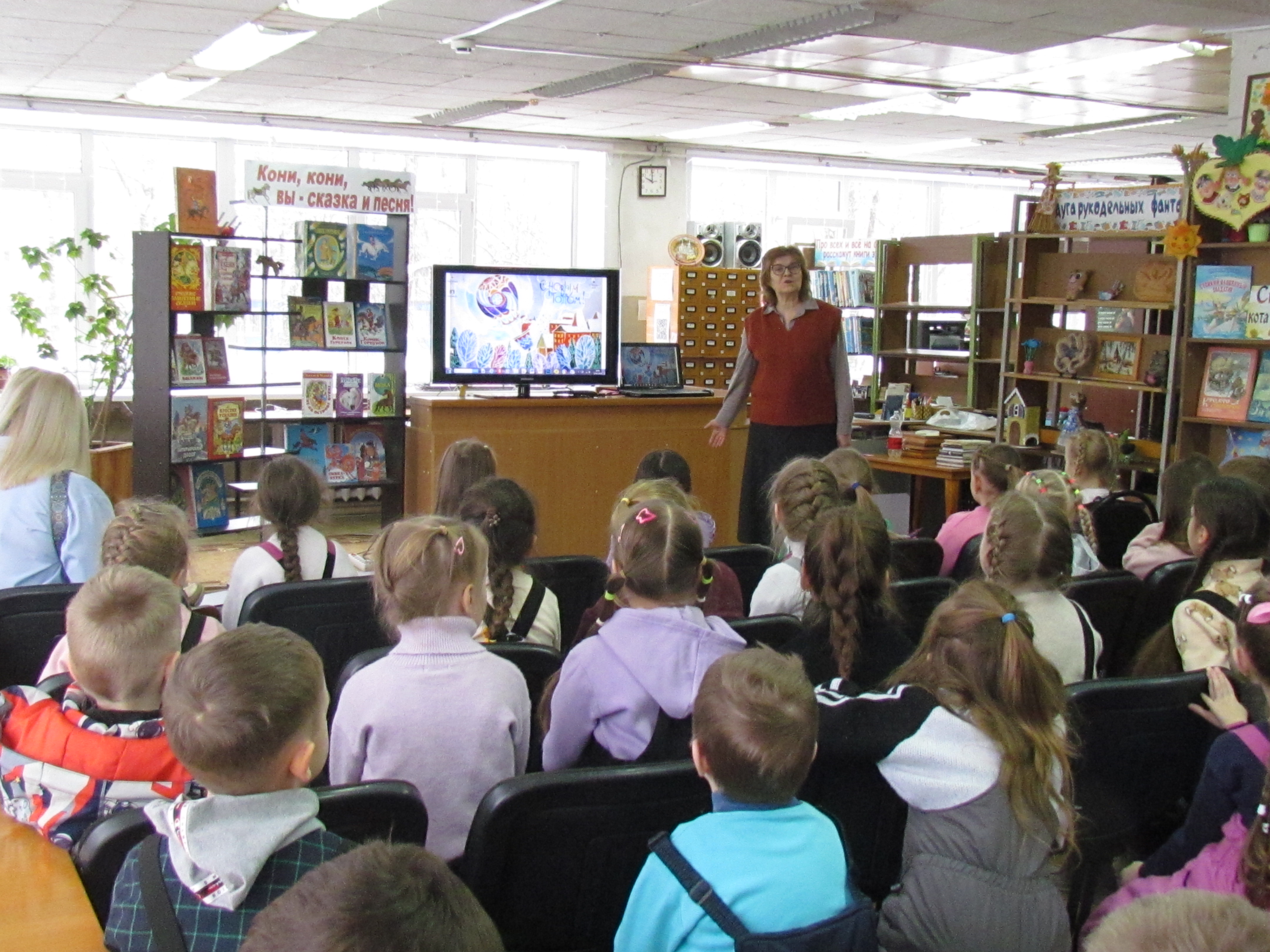 Закончился этот час просмотром мультфильма «Марусина карусель» и фотосессией с книгами с выставки «Кони, кони, вы – сказка и песня!»