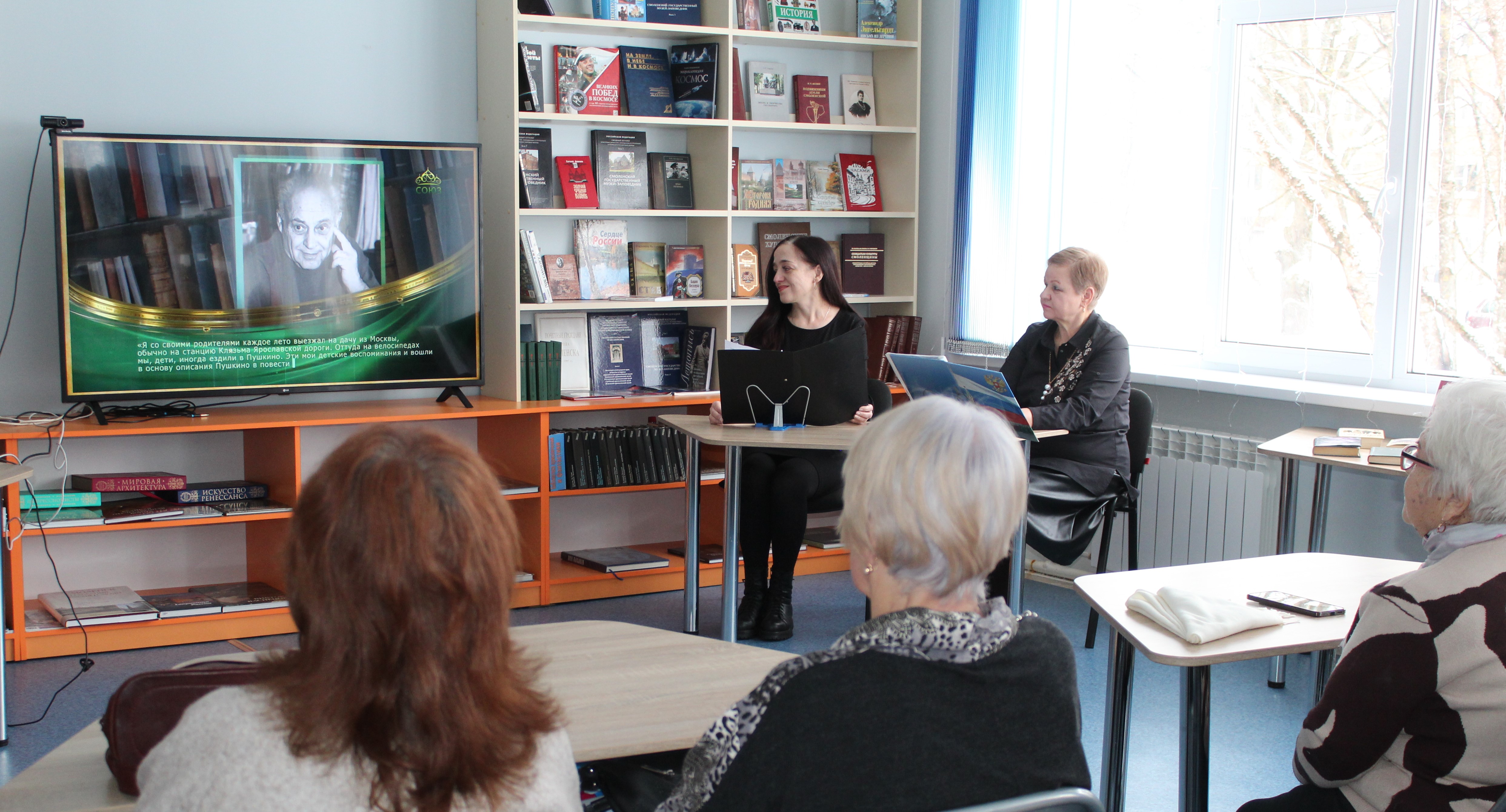 29 января в конференц-зале Сафоновской центральной районной библиотеки прошло первое в 2026 году заседание клуба «Кино и книга». Было особенно приятно вновь увидеть постоянных участников клуба, неравнодушных к чтению и искусству читателей.